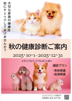 ワンちゃん・ネコちゃんも人と同じように季節の変わり目に体調を崩しやすくなります。