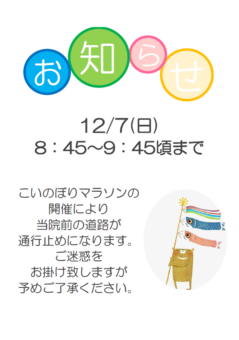 規制開始時間が少し早くなりましたのでご来院の際はご注意ください。