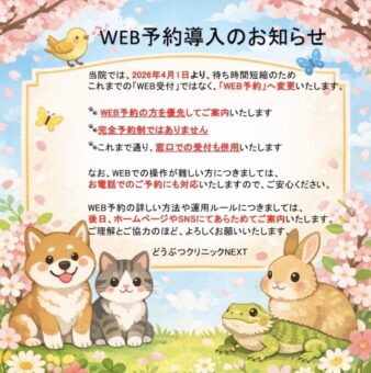 2026 3/01 WEB予約導入のお知らせ お知らせ 4月1日より、WEB受付からWEB予約へ変更となります。 WEB予約の方を優先してご案内しますが、完全予約制ではありません。 患者様の待ち時間の負担を少しでも減らせるよう、導入いたします。 詳細は後日お知らせします。 PREVIOUS